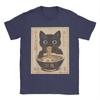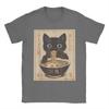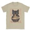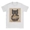 Japanese Black Cat Ramen T-Shirts Men Kawaii Noodle Cat Vintage Pure Cotton Tees O Neck Short Sleeve T Shirts Gift Idea Tops