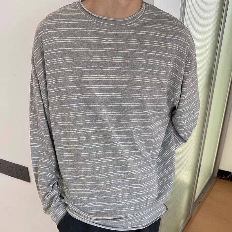 Móda Vintage Pruhované Pulovery Pánské Oblečení Základní Kulatý Výstřih Podzim Kontrastní Barvy Dlouhý Rukáv Ležérní Volná Trička
