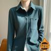 Lapel Solid Color Button Cardigan Shirt Women's Autumn and Winter Long-sleeved Bottoming Velvet Top