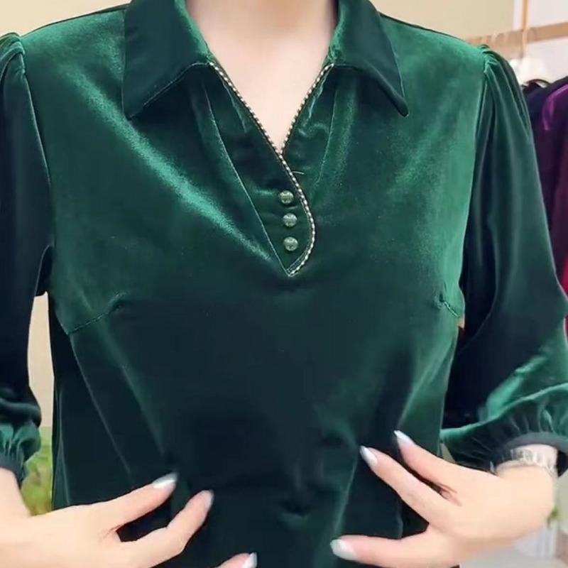 New Style Spring and Autumn Loose Tops for Women with Lapels and Lantern Sleeves Comfortable and Casual Tops