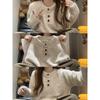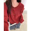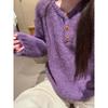 Plush button-up Henry collar knitted top women's autumn and winter temperament soft waxy shoulder sleeves loose sweater bottoming shirt
