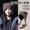 Winter Plush Beanies Cute Bear Ear Wool Hat Warm Lace-up Gorros Knitting Cap Women Bonnets Protection Bomber Korea Ear Knit X4L2