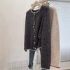 Soft waxy thickened crew neck sweater jacket women's autumn and winter new design sense outside wear lazy knitted cardigan top
