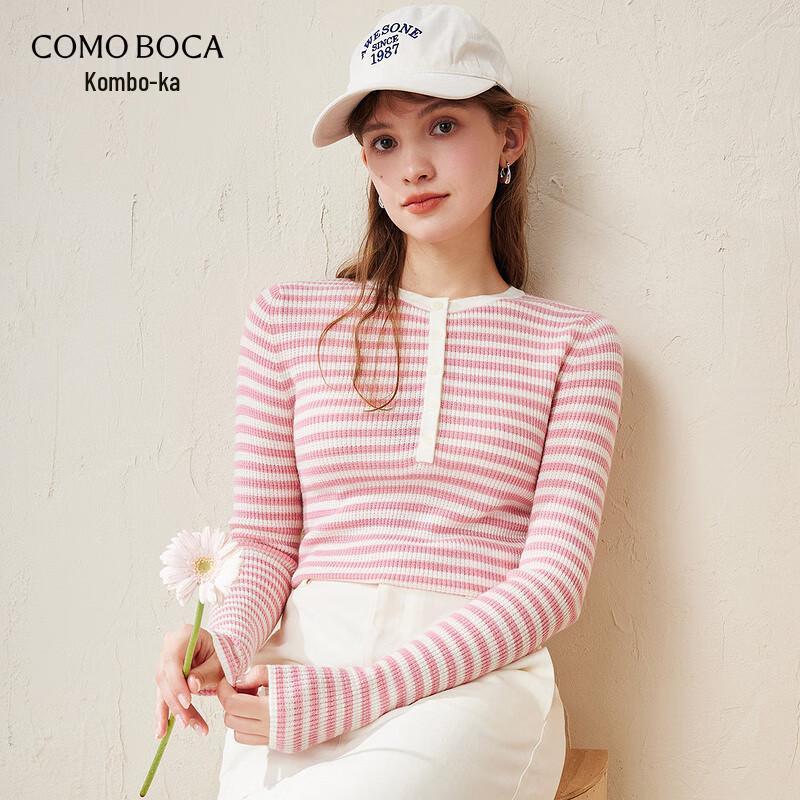 Women's Striped Color-Block 100% Wool Crew Neck Sweater