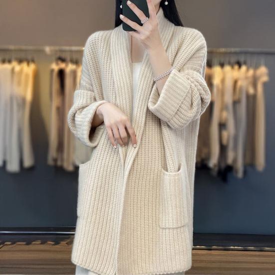 Functional Design Elements: Featuring two spacious front pockets, this cardigan offers practical storage for essentials like keys or a phone. These pockets also provide a cozy spot to keep your hands warm during chilly days, combining convenience with style in one versatile piece.