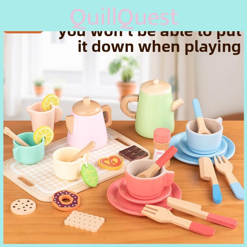 Wooden Afternoon Tea Cookies Cups Tableware Set Children Toys For Imaginative Pretend Play