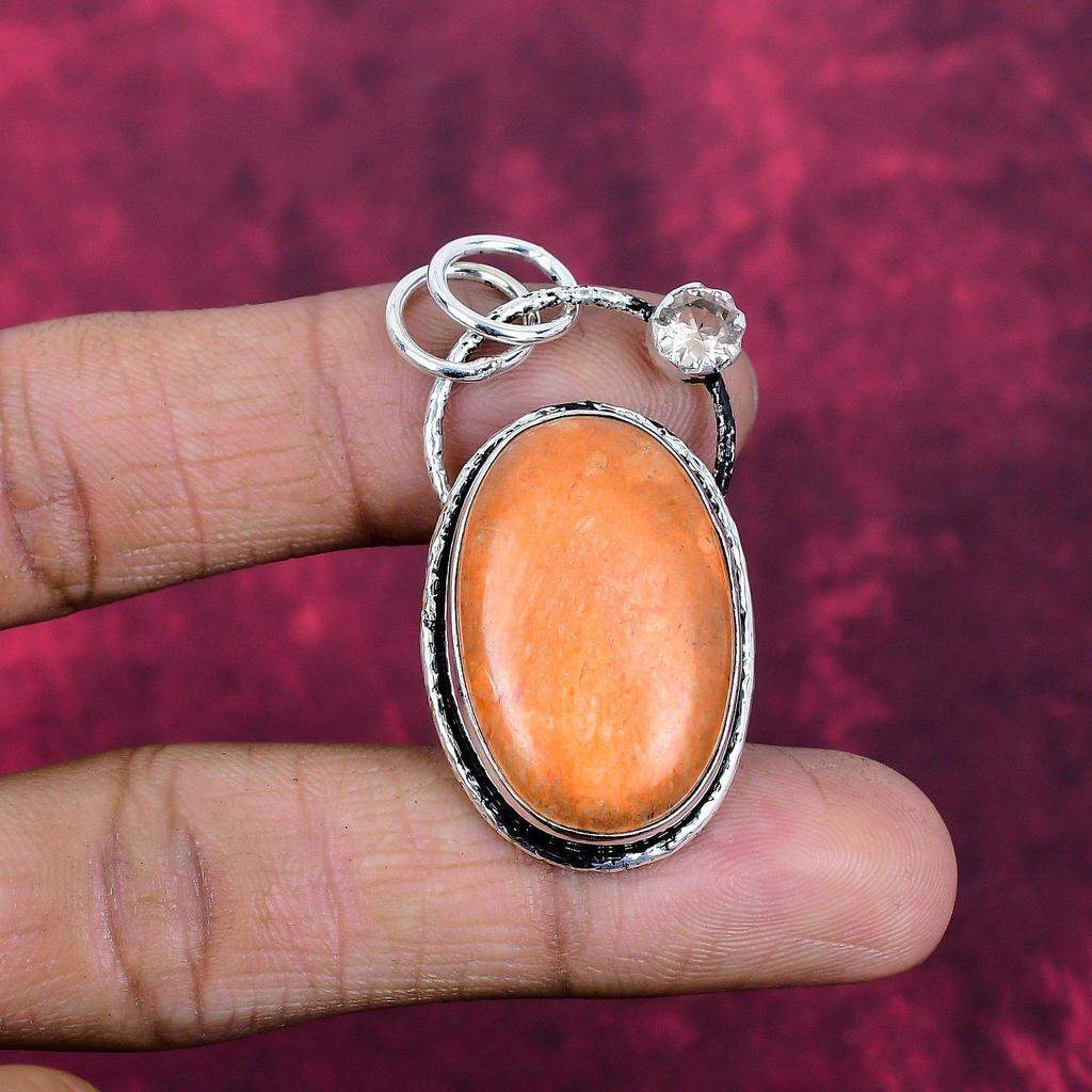 Sponge Coral & Morganite Pendant, 925 Sterling Silver Pendant Jewelry. Gift For Women Handmade Pendant Gemstone Jewelry