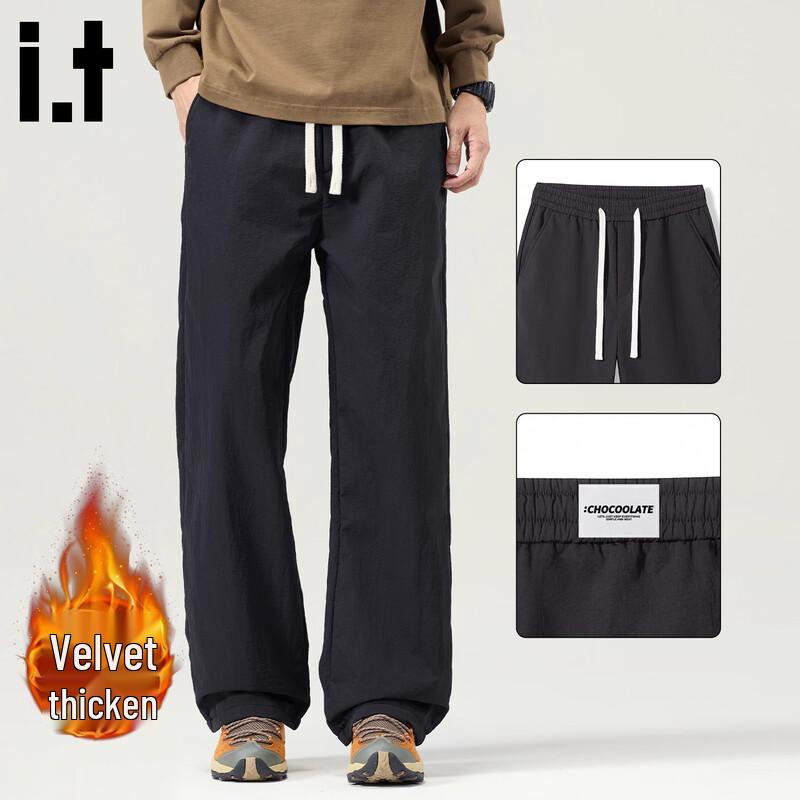 Embrace comfort and style with CHOCOOLATEit Men's Fleece-lined Loose Straight-Leg Casual Pants. Perfect for autumn and winter, these fashionable trousers feature a cozy fleece lining, a relaxed fit, and a versatile design suitable for daily wear or travel. Made from durable nylon, they offer a blend of modern style with a touch of European flair, complete with subtle letter detailing and a drawstring waist for an adjustable fit.