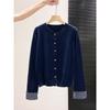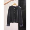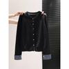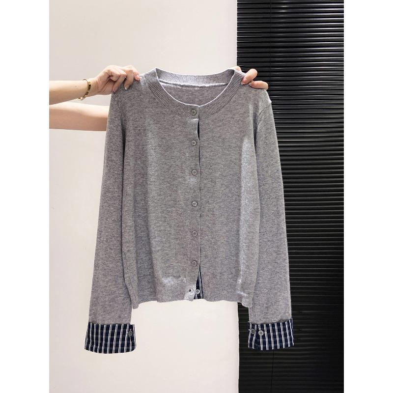 Plaid splicing single-breasted cardigan women's spring and autumn fashionable top knitted sweater versatile jacket