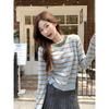 Niche striped contrasting color long-sleeved knitted cardigan spring and autumn design button-bottomed shirt inner top women
