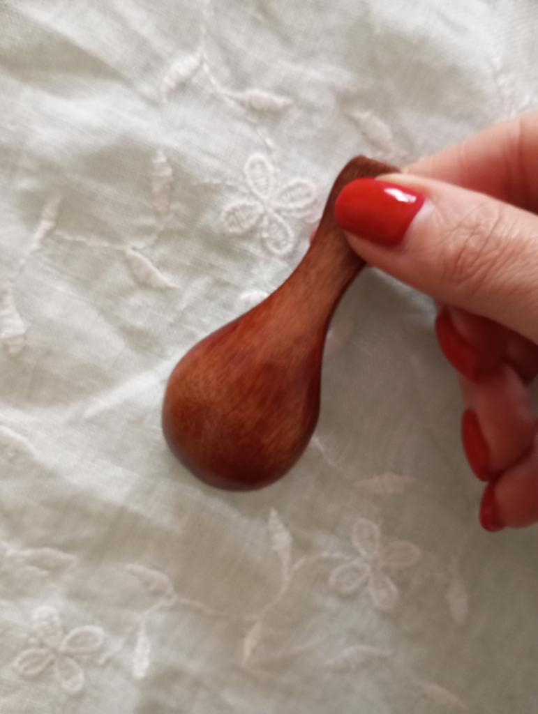 Na první pohled to může vypadat jako prostý dekorativní detail, ale v každodenním životě se stane tím kouskem, o kterém jste nevěděli, že ho potřebujete, dokud ho nemáte v ruce. Je to dokonalý doplněk pro ty dózy na koření, hrubou sůl nebo kávu, kam se běžná lžička prostě nevejde nebo je příliš hrubá.. Nejvíc se mi líbí její organický dotek. Protože je vyřezaná ze dřeva s hladkým lakovaným povrchem, má hřejivost, kterou kov nebo plast nikdy nedokážou napodobit. Je lehká, má velmi pohodlné ergonomické zakřivení pro prsty a její velikost je ideální pro přesné dávkování bez plýtvání. Kromě toho, že je funkční, dodává rustikální a promyšlený nádech prezentaci jakéhokoli stolu nebo kuchyňské police. Je to malý kousek, ale obrovský v šarmu a užitečnosti pro milovníky dobře zpracovaných detailů.