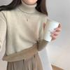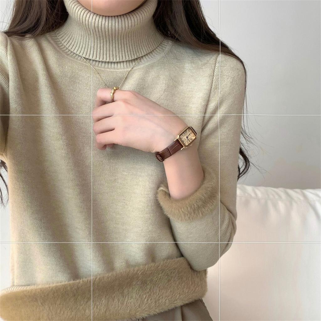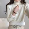 Solid color turtleneck integrated fleece thickened inner top women's winter simple basic knitted bottoming shirt soft waxy sweater