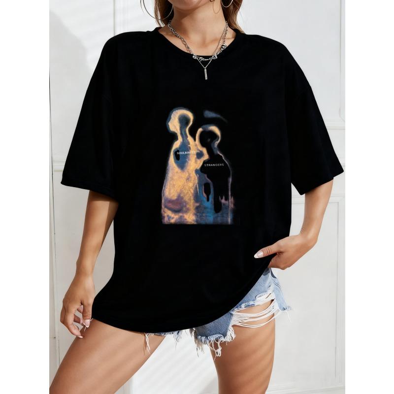 White Oversized T-Shirt With Abstract Art Print And Text For Casual Wear
