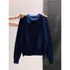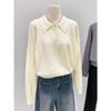 Temperament soft waxy button olo lapel knitted sweater women's autumn versatile lazy wind loose long-sleeved bottoming top