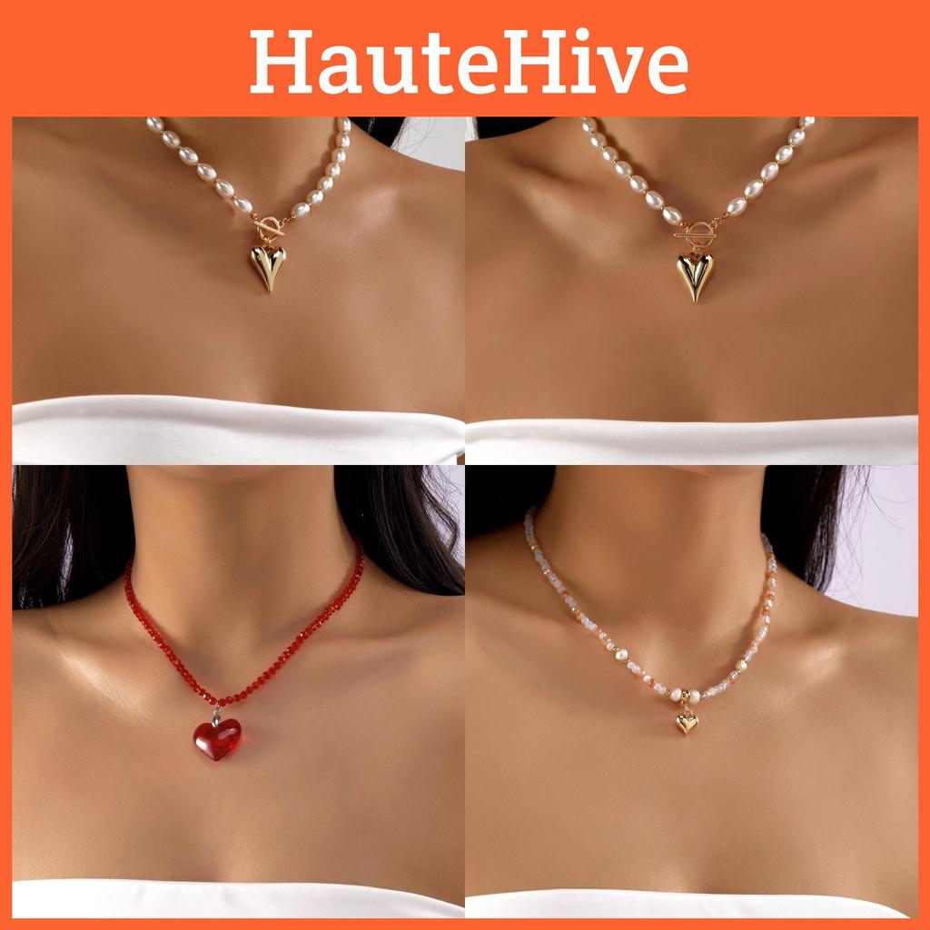 Heart Theme Layered Necklace With Crystal And Pearl For Summer Beach Outfits