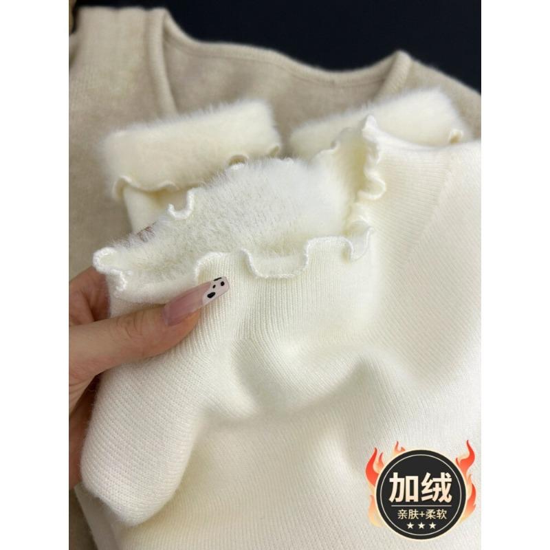 Autumn and winter warm semi-turtleneck knitted sweater women's fungus edge fleece sweater simple and versatile inner backing top