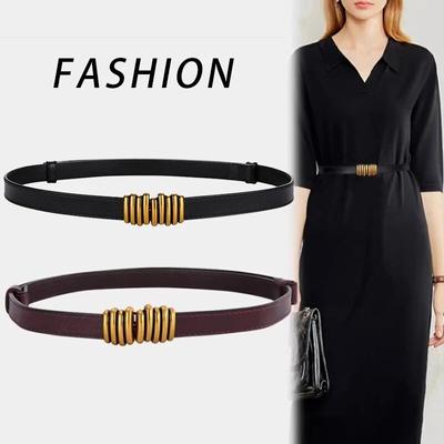 Female Genuine Leather Belt For Summer Fashion Slim Fit With Metal Clasp For Dress And Casual Styles