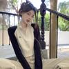 Wear a contrasting color stand-up neck knitted cardigan in early autumn, front shoulder zipper, long-sleeved top, slim-fitting jacket for women