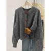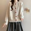 Contrasting color love single-breasted age-reducing sweater jacket women's autumn and winter lazy soft waxy knitted top shoulder-sleeved cardigan