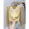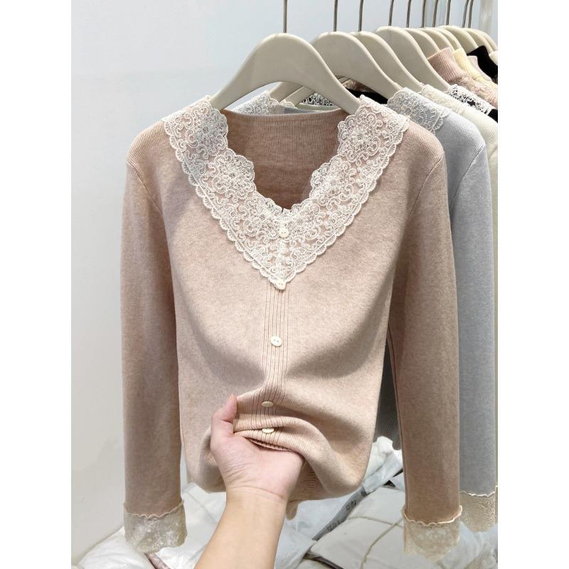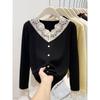 Design lace collar knitted bottoming shirt women's spring button-up top soft waxy sweater