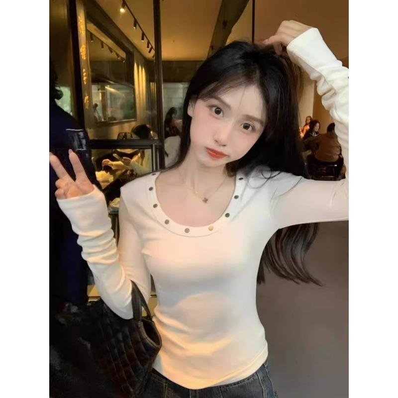 Temperament collar, rivet shirt, long-sleeved women's top, spring slim-fit Spice Girl style fashionable inner bottoming shirt