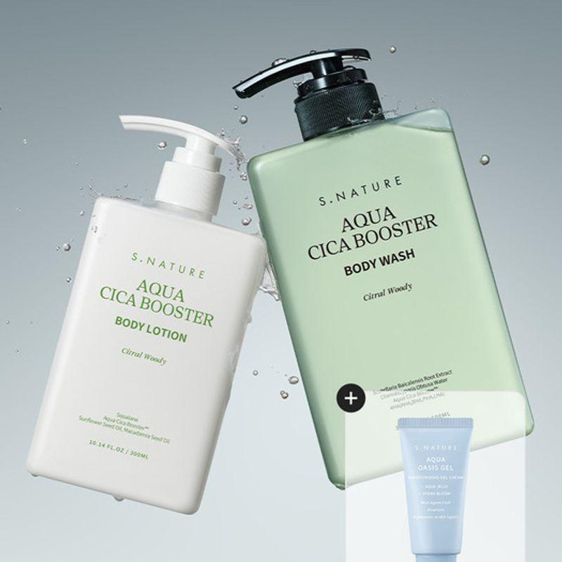 Aqua Cica Booster Body Duo Set (Wash 500ml + Lotion 300ml) (+Free 30ml Gel Cream)