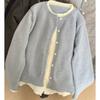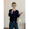 Fake two-piece button-knitted jacket women's spring plaid splicing sweater casual lazy top cardigan