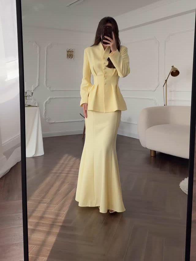 Elevate your wardrobe with this sophisticated retro-inspired women's set, featuring a long sleeve top and matching skirt. With its timeless solid color design, this ensemble offers a seamless blend of classic elegance and contemporary style. Crafted from a high-quality cotton and polyester blend, the fabric ensures both comfort and durability, making it a perfect choice for any occasion. The set is designed to be versatile, allowing you to style it up or down effortlessly for day or evening wear.