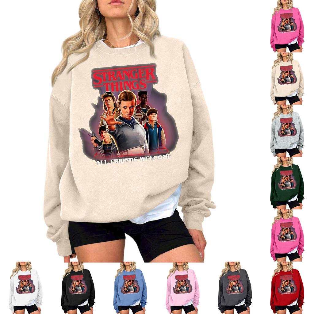 Dámská módní a ležérní mikina s dlouhým rukávem, kulatým výstřihem a potiskem