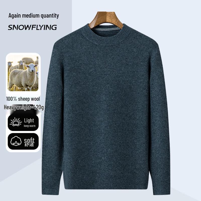 SNOWFLYING Men's Thickened 100% Wool Round Neck Sweater