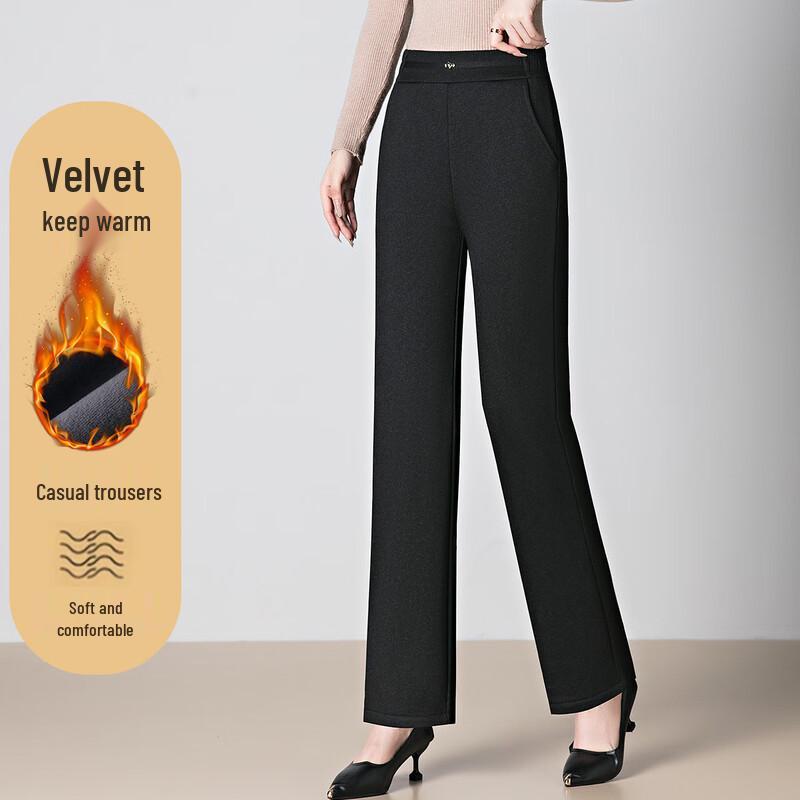 XiHui Women's Warm Fleece-Lined Straight-Leg Trousers
