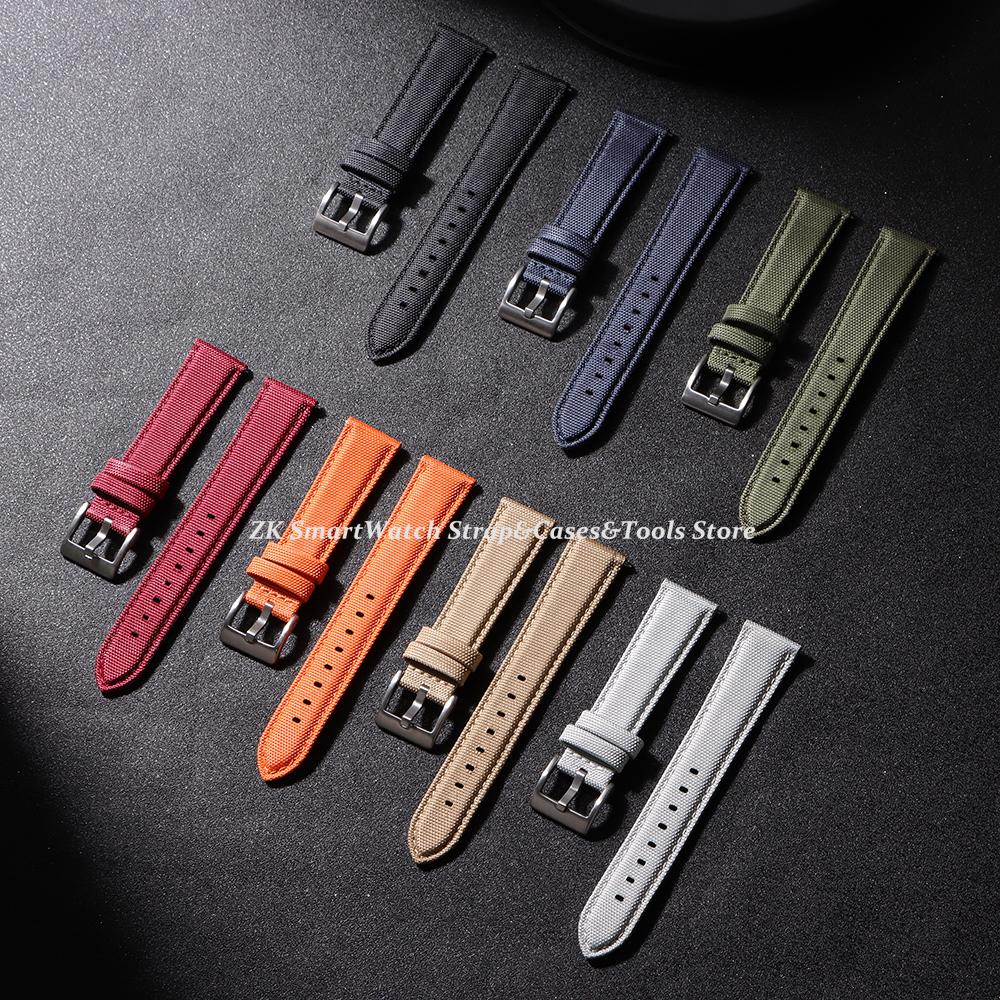 Nylon Leather Watch Strap 20mm 22mm Quick Release Spring Military Watchband Army Green Bracelet with Black Clasp Accessories