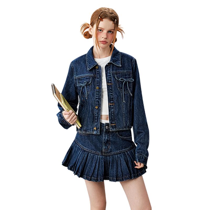 UNIFREE Women's Cropped Blue Bowknot Denim Jacket