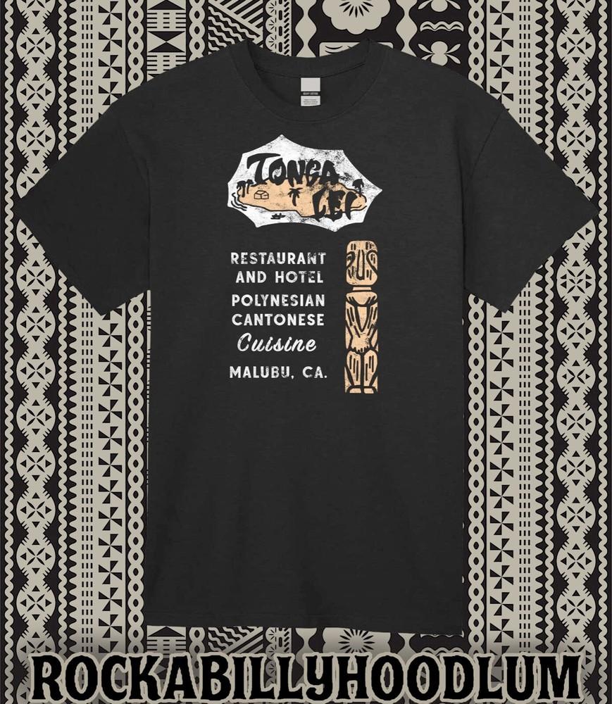 Retro Tiki Tee T Shirt Bar Mug Restaurant Tonga Lei Malibu CA