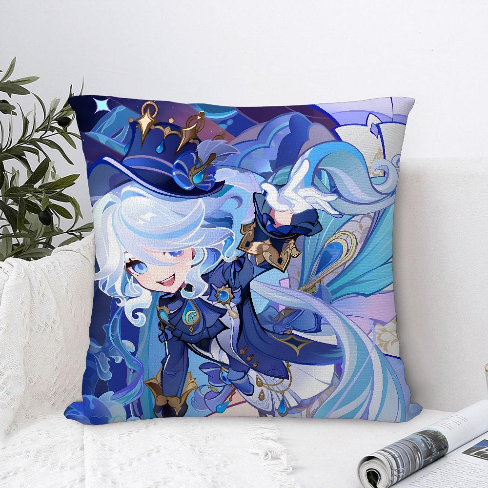Genshin lmpact Furina Foutiane Povlak na polštář Obývací pokoj Oboustranný tisk Čtvercový polštář Potah na polštářek Dekorace Povlak na polštář