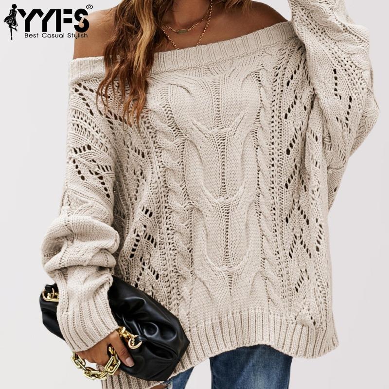 YYFS Women's Fashion Casual Fall Winter Love Letter Print Long Sleeve One Shoulder Tops Women's Clothing Woolen Knitwear Sweaters
