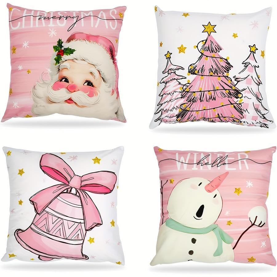 Christmas Themed Pink & White Pillowcases: Santa, Trees, Bell, Snowman Sofa bed cushion cover, New Year home decoration