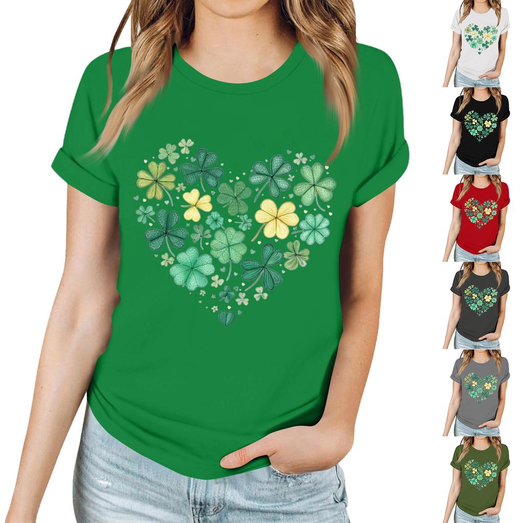 Women's Casual Saint Patrick Print T-Shirt Round Neck Pullover Short Sleeve Top