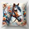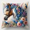 Majestic Horse - Floral Elegance Pillow CoversLiving room sofa cushion cover, soft and comfortable, bedroom room decoration