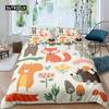 Kreslená liška král královna povlak na přikrývku Krásná oranžová zvířecí květinová sada ložního prádla Děti Dívky Květiny Rostlina 2/3ks Polyesterový povlak na přikrývku