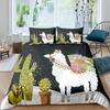 Cute Cartoon Alpaca Llama Cactus Print Duvet Cover Set Full Size, Alpaca Bedding Set Botanical Animal Comforter Cover,Multicolor