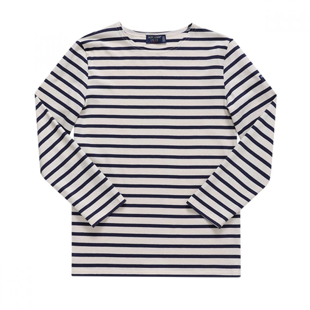 The Saint James Kids Long Sleeve T-Shirt in the ECRU MARINE design is expertly crafted from high-quality cotton, ensuring comfort and durability for active children. This stylish piece features a modern stripe pattern, making it a versatile addition to any child's wardrobe. The color combination of ivory and navy provides a classic yet trendy look suitable for various occasions.