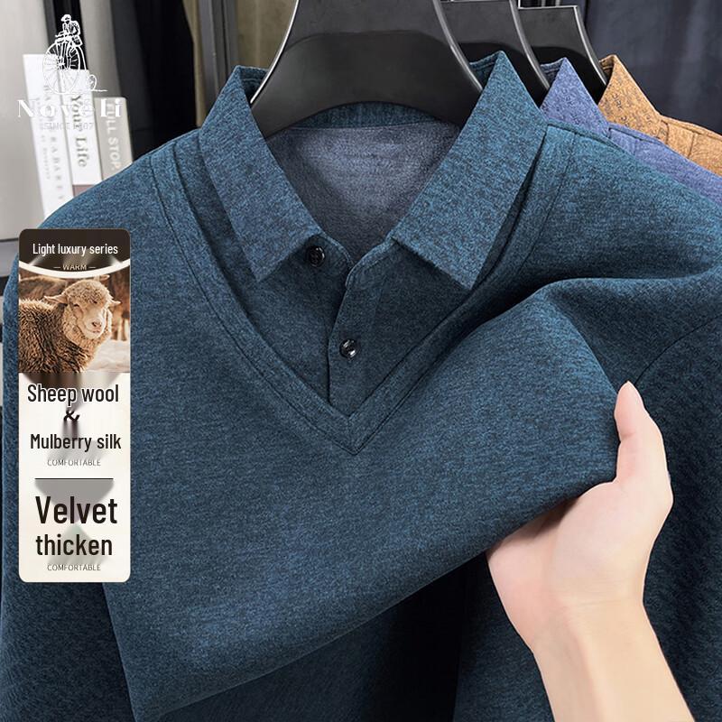 Men's Fleece-Lined Fake Two-Piece Shirt Collar Sweater