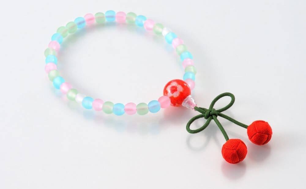 Children's Prayer Beads, Cherry Design, Cute One-Handed Prayer Beads for Memorial Services, Buddhist Ceremonies, and Funerals, Kyoto Style, Made in