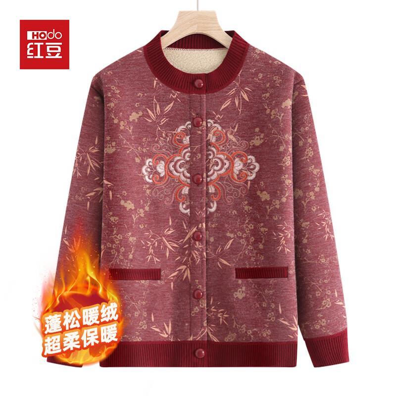 Hodo Women's Mid-Aged & Elderly Winter Fleece-Lined Knitted Cardigan