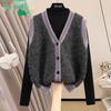 Women's Wool Blend Color Block V-Neck Knit Cardigan