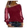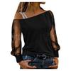 Dámská móda Diagonální výstřih Síťovina, Dlouhý rukáv, Základní top s jedním výstřihem