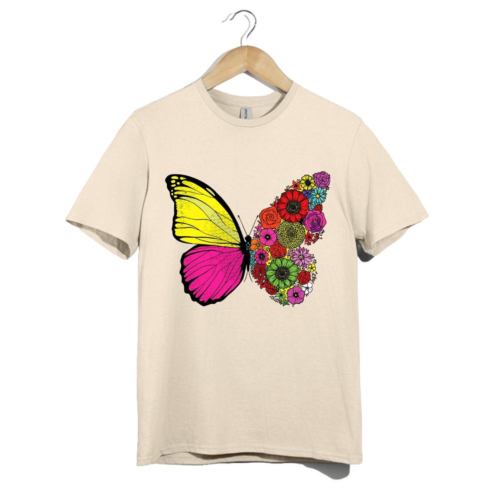 Floral Butterfly T-Shirt | Colorful Nature Wing Tee | Boho Garden Gift Top