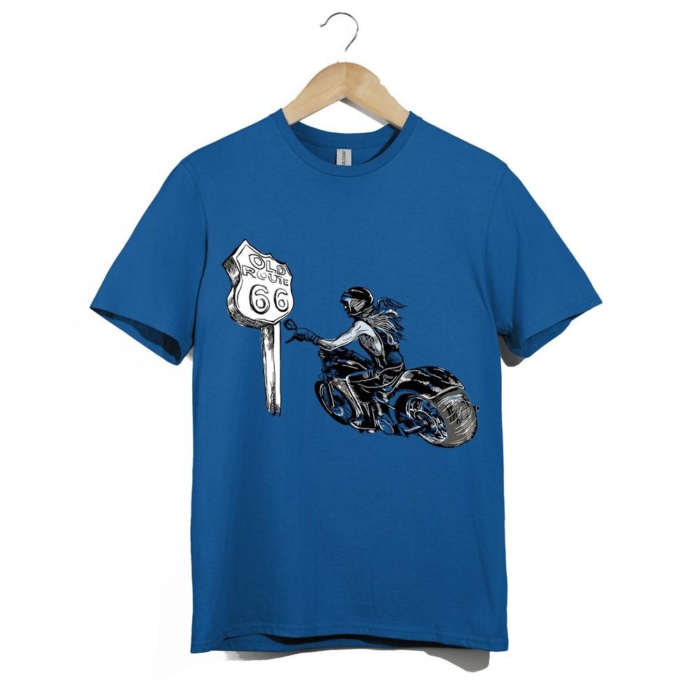 Route 66 Biker Girl T-Shirt Unisex Vintage Motorcycle Rider Graphic Chopper Tee