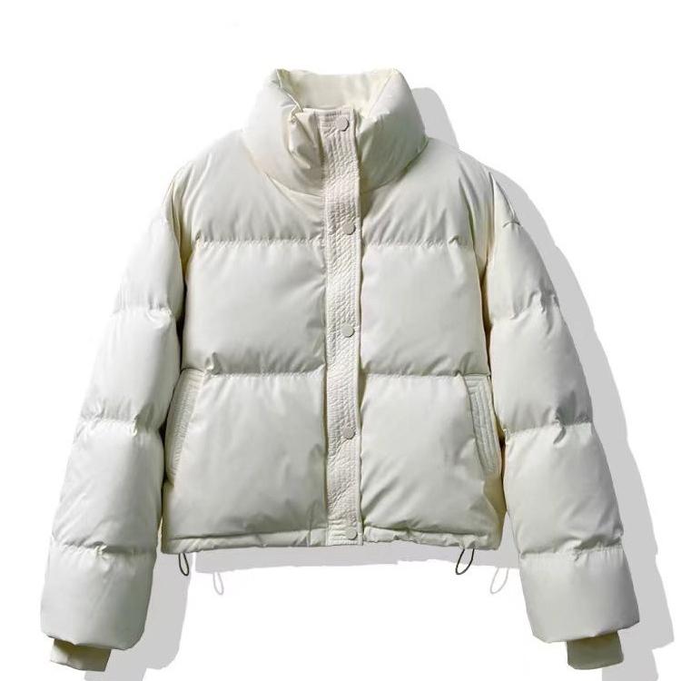 VAYLA Women Mock Neck Cotton-padded Jacket Single Breasted Pocket Casual Down Coat Winter Warm Loose Short Coat Fall